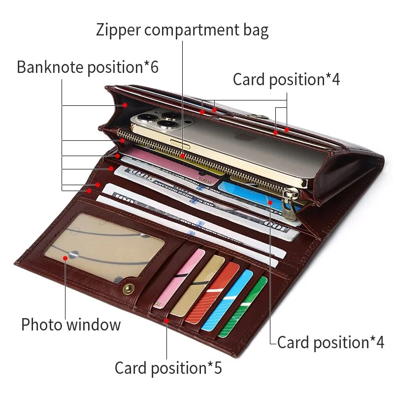 SCHLATUM Women Leather Wallet Long Multifunction Business Card Holder Purse Brand Fashion Female Purse