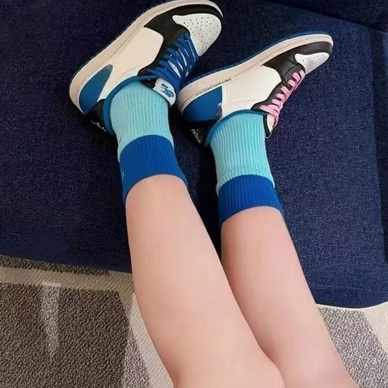 Hooked and spliced socks, double layered fake two-piece sports style, high aesthetic value, men's and women's fashion, high top towel bottom and middle tube