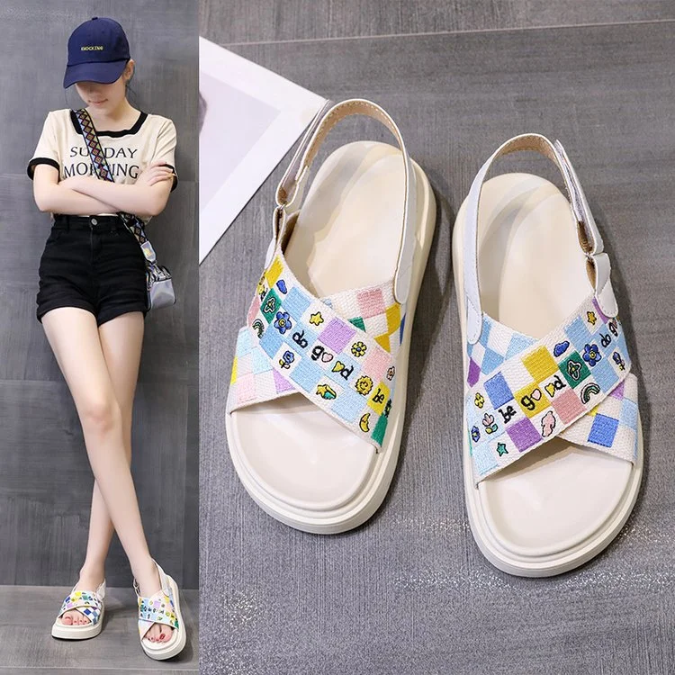 Platform sandals for women 2023 this year's new summer Japanese cross Roman beach shoes alphabet cartoon sandals and slippers western style