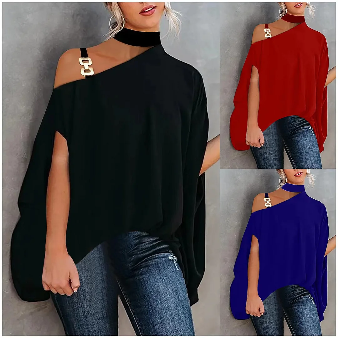 Women's Clothing irregular chain oblique shoulder strap printed top